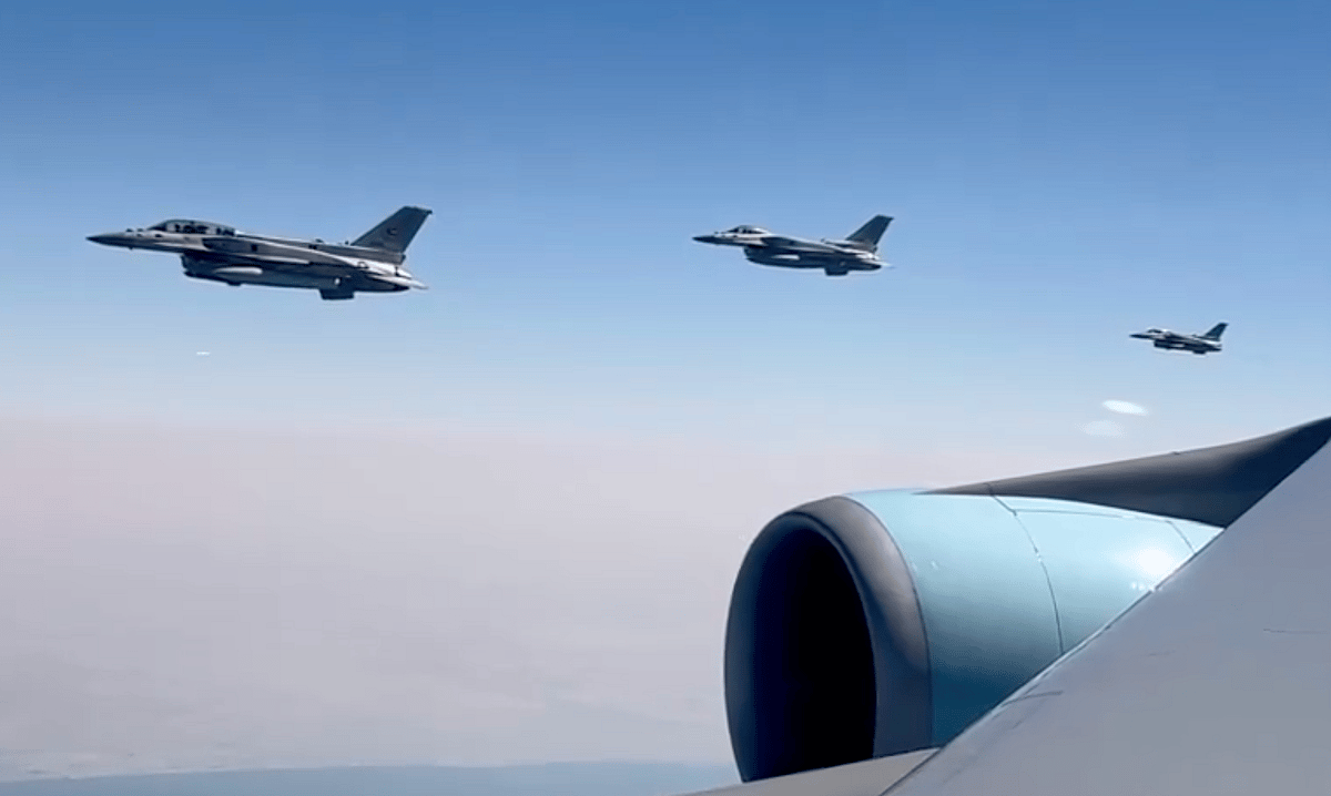Emirlik savaş uçakları Air Force One’a eşlik ediyor