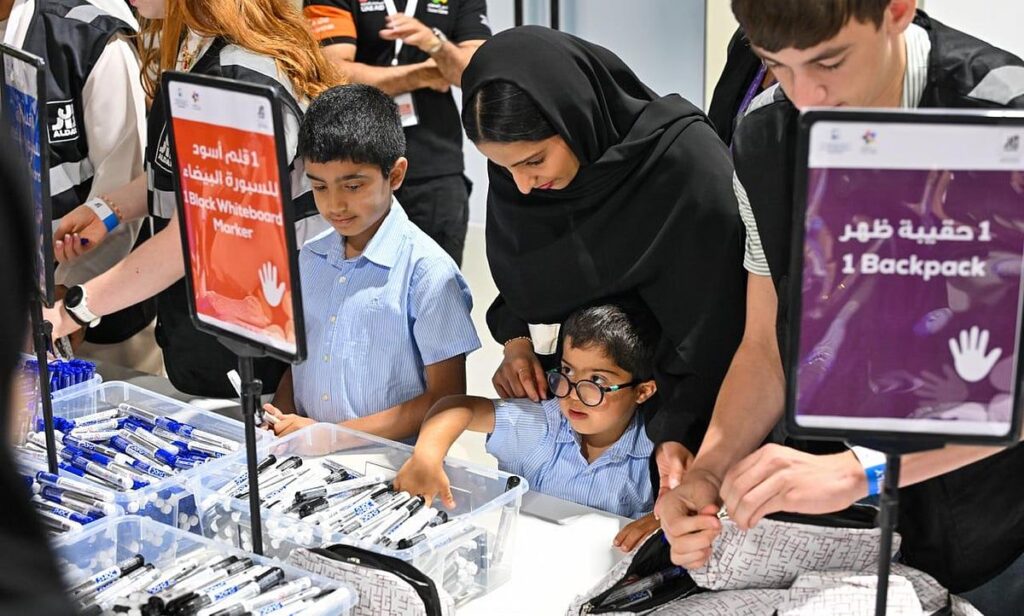 Yüzlerce gönüllü Cuma günü Abu Dabi’de yan yana çalışırken, yeni akademik yıl öncesinde düşük gelirli ailelerden gelen çocuklar için okul çantaları toplarken, kaset çalma, kutu açma ve talimatların sesi havayı doldurdu.