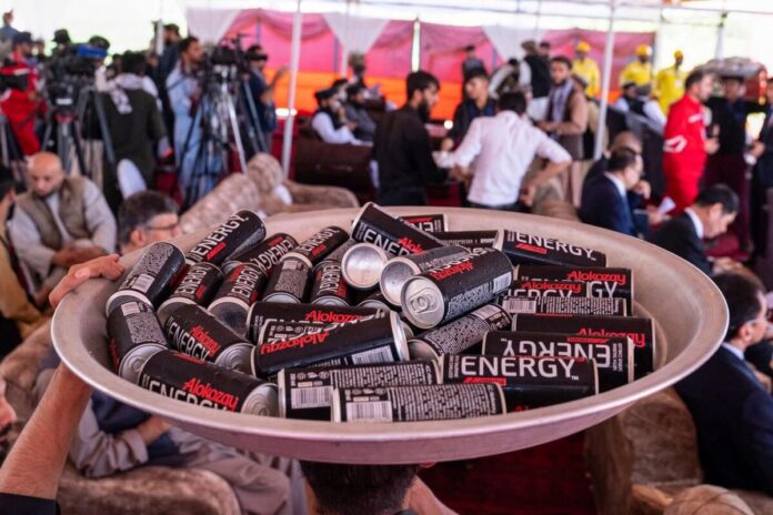 Afganistan’ın batısındaki bir depodaki bir üretim hattı, her saniye 24 enerji içeceği üretiyor ve hayatın zorluklarını maskelemek ve solan ruhları kaldırmak için kullanılan tonik için susuzluğu besliyor.Taliban hükümeti birçok Batı etkisi belirtisini temizledi, ancak ABD askerleriyle birlikte gelen uyarıcı bir içecek çılgınlığı devam ediyor ve hatta gelişen bir yerli sanayiyi filizlendirdi.29 Ağustos 2024’te çekilen bu fotoğrafta Afgan bir kadın, Kandahar’daki Kandahar havaalanı’ndaki bir enerji içeceği reklamının önünden geçiyorKafein ve şeker oranı yüksek ve genellikle yol kenarındaki büfelerde içme suyundan daha fazla bulunan enerji içecekleri, birçok Afgan tarafından yetersiz beslenmeyi desteklemenin bir yolu olarak görülüyor.Dünya Gıda Programı’na (WFP) göre, yoksul Afganistan’daki insanların yaklaşık yüzde 90’ı yetersiz gıda tüketiyor.Mart ayındaki en son veriler, hanelerin yüzde 86’sının daha az tercih edilen ve daha ucuz yiyeceklere güvendiğini, üçte birinden fazlasının öğünleri ve yarısından fazlasının porsiyonları azalttığını ortaya koyuyor.Bir işçi olan Gülzar, 14 saatlik çalışma günlerini dört kutu “Hit” ile körüklüyor.“Burada çalışıyoruz, terliyoruz, bu yüzden yorgun olduğumuzda enerji içiyoruz” dedi 40 yaşındaki tek bir isimle.“Eğer içmezsen yorgunsun, başın ağrıyor, yorgunsun.”Ancak bu kadar çok enerji içeceği içmenin bir bedeli var.Gulzar’ın diyeti, Dünya Sağlık Örgütü’nün önerdiğinin iki katı olan 100 gramdan fazla şeker ve sigara içme alışkanlığıyla karşılaştırdığı altı espressoya eşdeğer bir kafein isabeti içeriyor.ABD Gıda ve İlaç İdaresi’ne göre aşırı kafein tüketimi yüksek tansiyona, kalp çarpıntısına, kaygıya ve uykusuzluğa neden olabilir.Ama Gülzar başka seçeneği olmadığını söylüyor.“Afganistan fakirleşmenin altında” dedi. “İmkanımız olsaydı bunu kullanmazdık.”Yerel markalar yalnızca 30 Afgan’a (0,40 $) mal olurken, en popüler küresel isimlerden ikisi olan ithal Red Bull veya Monster çoğu için uygun değildir.Azalan dış yardıma güvenen en yoksul Afganlar enerji içeceği satın alamıyor ve bunun yerine kafeinli yeşil çaylı ekmekle geçiniyorlar.