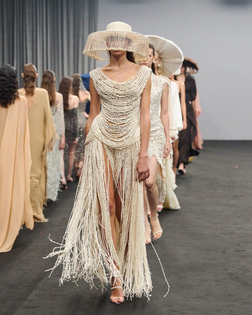 Büyük boy şapkalar Dubai Moda Haftası’nda anında kalabalığın favorisiydi. Heykelsi, dramatik ve görmezden gelinmesi imkansız olan Kresha Bajaj’ın ilk uluslararası vitrini olan Gizli Şeyler Arşivi’ni (kelimenin tam anlamıyla) taçlandırdılar. Ancak izleyicilerin görmediği şey sahnelerin ardındaki kaostu: ”Şapkaları yaptırdığımızda bir tür felaketti,” diyor Bajaj, City Times ile yaptığı gösteri sonrası sohbette. “Son iki gecedir tüm kusurları örtmek için üzerlerine tül dikiyordum. Ve onları bu güzel moda parçalarına dönüştüren de buydu. Şimdi herkes bana soruyor, ‘Şapkaları nereden alabilirim?’”