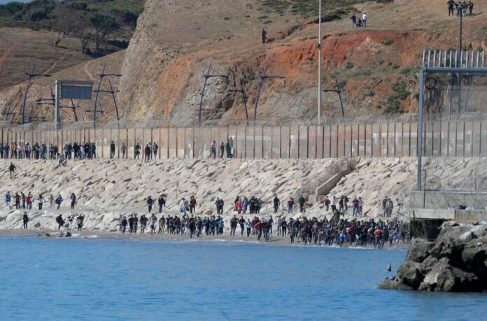 Yerel polis, yüzlerce göçmenin Pazar günü ve Pazartesi günü erken saatlerde komşu Fas’tan İspanya’nın Ceuta yerleşim bölgesine yüzmek için yoğun bir sisten yararlandığını söyledi.