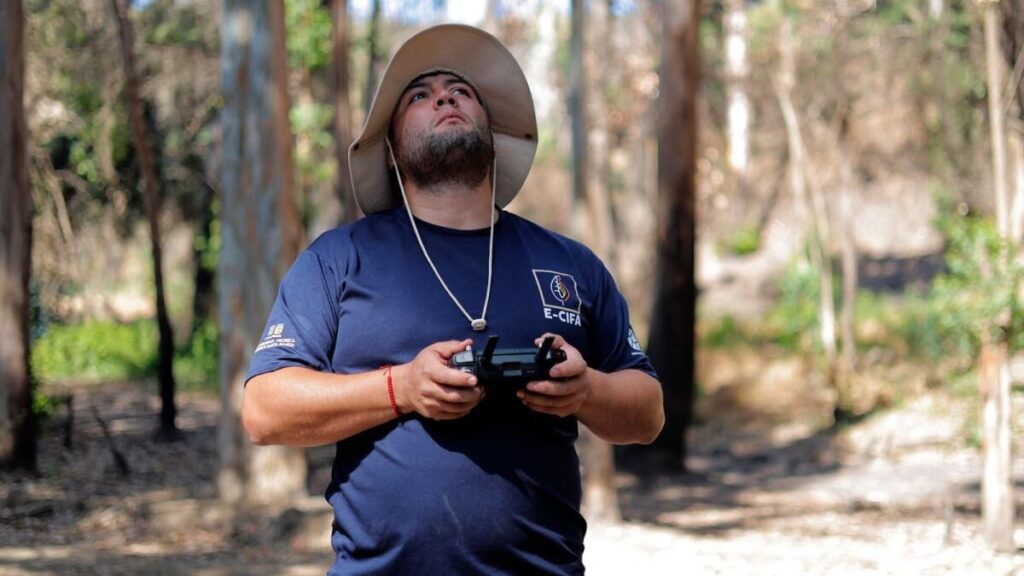 Drone pilotu Camilo Carmona, 18 Aralık 2024’te Şili’nin Vina del Mar kentindeki Botanik Bahçesi’nde bir bölgenin ayrıntılı topografyasını ve bitkilerin sağlığını analiz etmeyi sağlayan çok spektral bir dronun pilotluğunu yapıyor