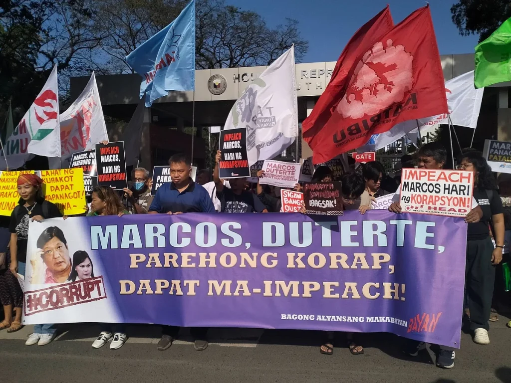 Davaya yönelik birkaç grup, Perşembe günü Filipin Cumhurbaşkanı Ferdinand ‘Bongbong’ Marcos Jr.’a “Anayasayı ihlal etmek, vatana ihanet, rüşvet, rüşvet ve yolsuzluk, diğer yüksek suçlar ve halkın güvenine ihanet etmekle suçlayarak”suç duyurusunda bulundu.”