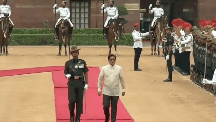 Hindistan’a beş günlük bir devlet ziyaretinde bulunan Filipinler Devlet Başkanı Ferdinand Romualdez Marcos Jr, Salı sabahı Rashtrapati Bhawan’ın ön avlusunda törensel bir karşılama aldı.