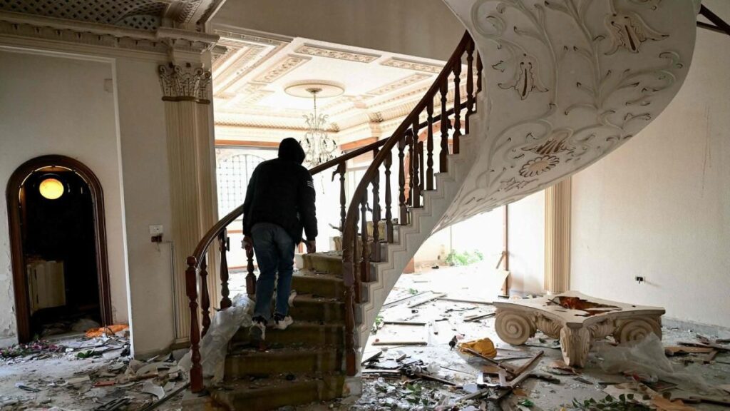 15 Aralık 2024’te batı liman kenti Lazkiye’de devrik Suriye Devlet Başkanı Beşar Esad’ın akrabası Hafız Münter Esad’ın hasarlı evinde bir adam merdivene tırmanıyor“Burada ilk kez duruyorum,” dedi Nemer. “Geçmişte gardiyanlar bizi kovalardı. Park etmemize izin verilmedi.”İki katlı ev de soyulmuştu. Avizeler, mobilyalar, sıva kalıpları… hepsi gitti. Aile fotoğrafları yırtıldı ve portreler artık çıplak duvarlardan yırtıldı. Yağmacılar meşguldü.“Ayda 20 dolar alıyorum. Sadece ailemi beslemek için iki iş yapmak zorundayım, “dedi Nemer, şehir sokaklarında hızla ilerleyen Esad klan konvoylarının anısına acı çekti.Munzer’in oğlu Hafız bir araba galerisi işletiyordu – Suriye Arabası. Şimdi kırık camın arasında sadece tek bir araç oturuyor.Araba çalışmayacak, bu yüzden insanlar onu parçalara ayırıyor, üstyapısını, camlarını ve döşemesini tahrip ediyor. Genç bir çift direksiyonun arkasına geçmiş gibi davrandı.Başka bir ziyaretçi olan Avukat Hassan Anwar bir görevdeydi. 51 Yaşındaki çocuk, daha sonra mahkemede kullanılabilecek herhangi bir belgeyi arayarak binayı denetledi.Bunun nedeni, Hafez’in arabalara el koymasıyla ya da satmadan önce piyasa fiyatının çok altında bir fiyata satın almasıyla tanınmasıydı.Enver, “Birkaç şikayette bulunuldu” dedi.Avukat, “Suriye Arabası” nın aslında ailenin kaçakçılık operasyonlarını maskelemek için büyük bir kara para aklama operasyonu olduğunu söyledi.Dışarıdaki kaldırımda, yoldan geçen iki kişi bir kanalizasyon ızgarasının yanında durdu. Onu kaldırdılar ve yüzlerce küçük beyaz hap çıkardılar.
