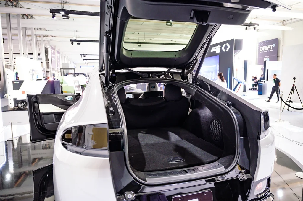 Driftx’te sergilenen otomobil — akıllı ve otonom kentsel hareketlilik teknolojisine sahip Yas Marina Circuit’teki Abu Dabi Özerk Haftası’nın bir parçası – o’dell’in “tüm teknolojiyi içeren daha büyük bir araç, çünkü bir süper bilgisayarımız var” olarak tanımladığı şirketin ilk üretim modeli içeride.”