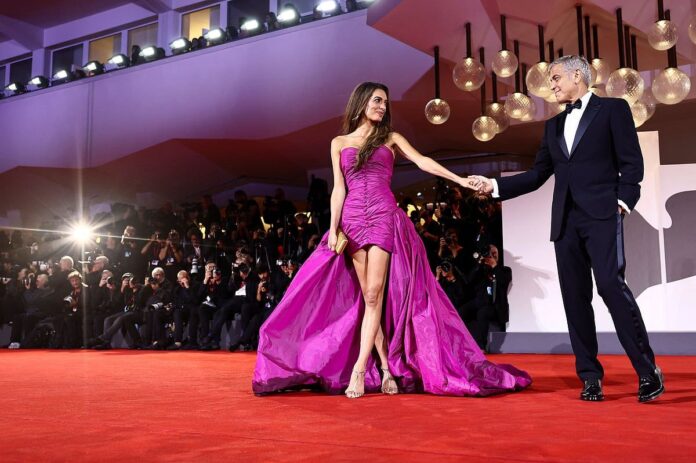 Fuşya Vintage Elbiseli Amal Clooney, Venedik Film Festivali’nde İlgi Odağı Oldu