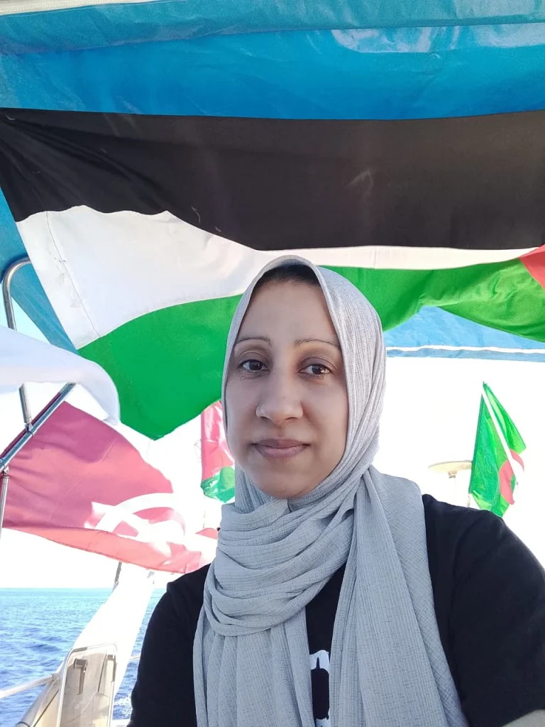 “Çağrıldım ve filonun bir parçası olmam istendi çünkü uzun yıllardır aktif ve açık sözlü bir insan hakları aktivistiyim ve başlangıçta aileme ve çocuklarıma karşı sorumluluğum olduğu için katılıp katılmayacağımdan emin değildim. ” dedi gemisinden konuşarak. Yaşları 21 ile 7 arasında değişen üç çocuk annesidir.
