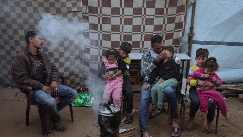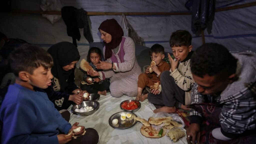 42 yaşındaki Badreya ve ailesi, 25 Ocak 2025’te Gazze Şeridi’nin merkezindeki Deyr El Balah’taki çadırlarında akşam yemeği yiyorlar. – Reuters