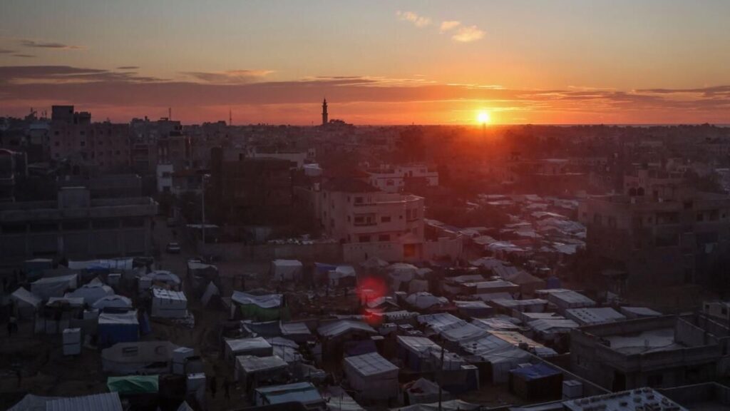Güneş, 25 Ocak 2025’te Gazze Şeridi’nin merkezindeki Deyr El Balah’ta İsrail ile Hamas arasındaki ateşkes ortasında yıkılan evlerine dönmeden önce İsmail Muhammed ve ailesinin sığındığı çadır kampında batıyor. – ReutersCebeliye’de mahallelerinin çoğunun düzleştiğini ve evlerinin çatısının ve üst katının zemin kata yığıldığını gördüler.Filistinliler İsrail’i gelişigüzel bombardımanla suçluyorlar. İsrail, Hamas’ı sivil halk arasında saklanmakla suçluyor ve mümkün olan her yerde sivillere verilen zararı en aza indirmeye çalıştığını söylüyor.“Neşe var ama tamamlanmadı. Ev yok, su yok, yiyecek yok. Bu gece nasıl uyuyacağımı bilmiyorum,”dedi İsmail.Bir komşuyla yeniden bir araya gelmek bir sevinç anı sağladı ve genç aile üyeleri kısa süre sonra molozların arasından geçerek oynamak için doldurulmuş bir oyuncak tek boynuzlu at seçtiler. Yerde şilteler ve bir yangın başlayınca İsmail uzandı.Aile, ateşkesin süreceğini ve yeniden inşa edebileceklerini umuyor. İsmail, Gazze Filistin Yönetimi tarafından kontrol edildiğinde güvenlik güçlerindeydi. Hamas 2007’de Gazze’yi ele geçirdikten sonra kendisine işe geri dönmemesi söylendiğini söyledi. Şimdi yol kenarında geleneksel bir atıştırmalık — pişmiş, tuzlanmış fasulye – satan bir iş istiyor.