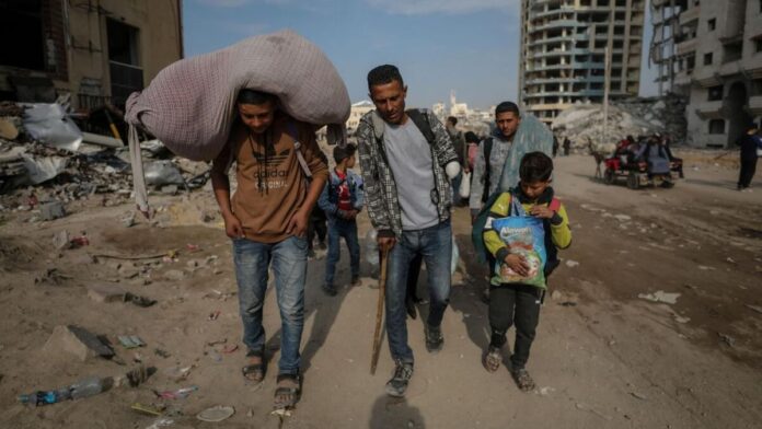 “Şarapnel burada uyurken çocukların yanından geçti. Ben buradayken çadırda gizlenmişti. Çocuklar korkudan hastalandı “dedi Badreya.Molozlara göz korkutucu bir yolculukDeir Al Balah, Jabalia’daki evlerine sadece 18 km uzaklıktadır. Ancak İsrail’in kontrol noktasında saatlerce sıraya girmesi gereken arabaları kiralamak nadir ve pahalıdır. Çoğu aile gibi Muhammedler de yürümek zorunda kaldı.İsmail için yolculuk göz korkutucuydu. Şeker hastasıdır ve savaştan önce hastalığından dolayı bir kolunu kaybetmiştir. Geçen yıl bir İsrail hava saldırısında bacağı yaralandı ve sırtında bir çanta toplarken sadece sert bir çubuğa ağır bir şekilde yaslanarak sallanabiliyor.Çadırlarını söküp bir komşusuna emanet etmesi için veren aile, yatak takımları, giysiler, mutfak eşyaları, yiyecek ve suyla dolu büyük paketler taşıyan en küçük çocuklar hariç herkes saatlerce yürüdü.Yol, uzun mesafeler boyunca, binaların durduğu her iki tarafı kaplayan moloz höyükleri ile neredeyse tamamen harabe olan bölgeleri geçti. Daha kuzeye gittiklerinde, bir taraftaki turkuaz Akdeniz, diğer taraftaki toz ve döküntülerle tezat oluşturuyordu.Gazze’ye vardıklarında, yerleşim bölgesinin kuzeyindeki İsrail kontrol noktasını geçtikten sonra, onları içeri sıkıştırarak son aşamaya götürecek bir taksi buldular.