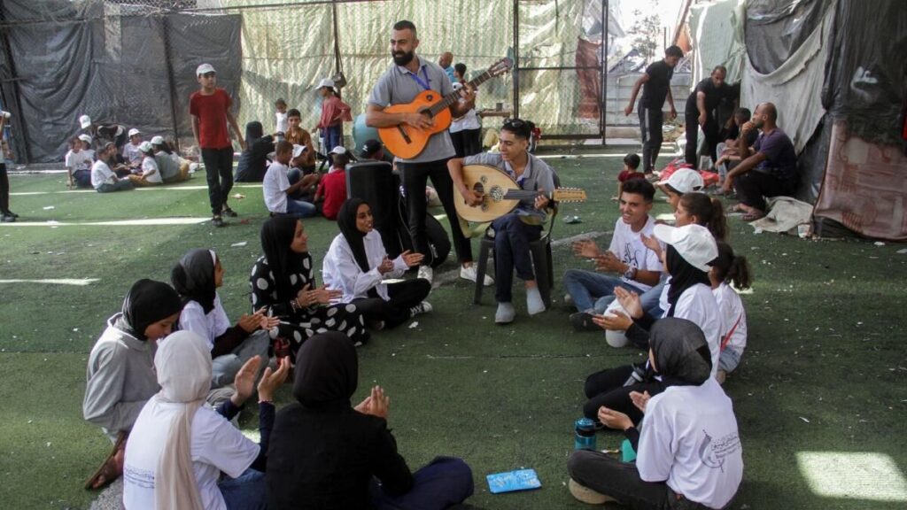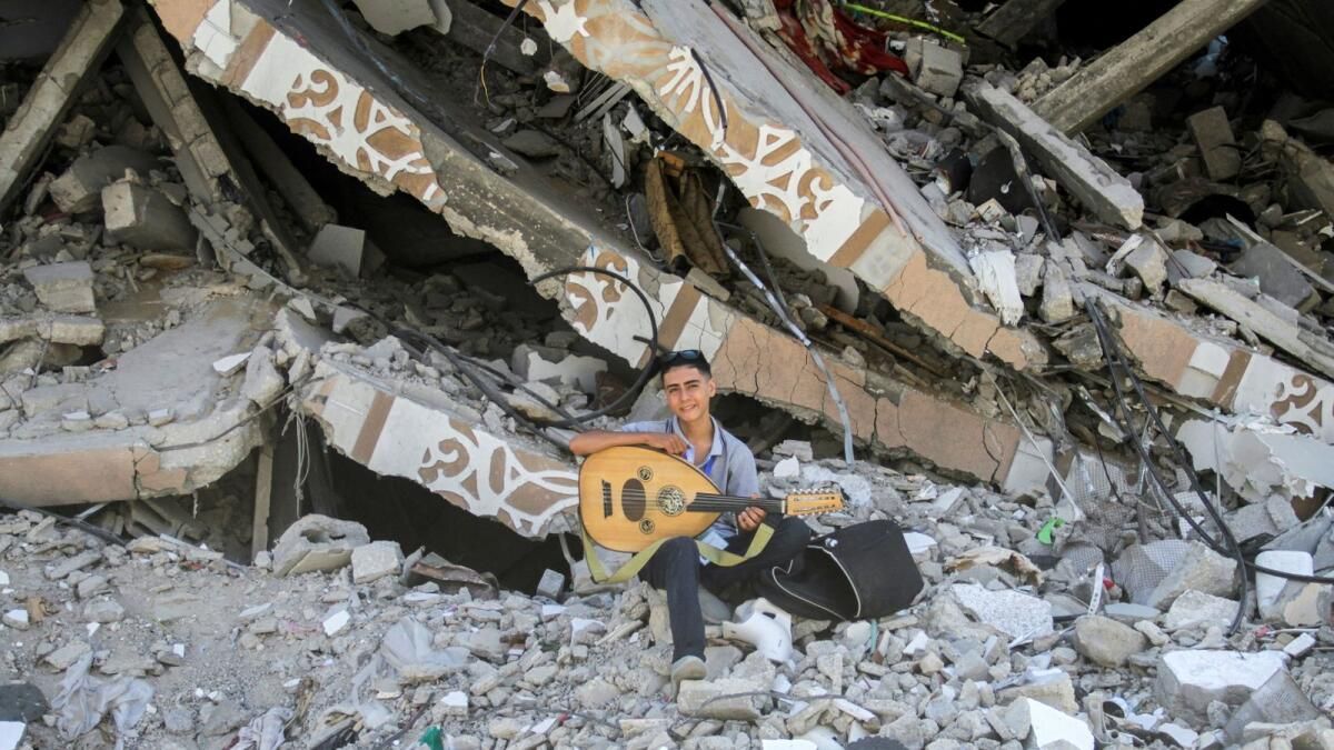 Sürekli hava saldırısı ve bombalama tehdidine göğüs geren Gazzeli ud sanatçısı 15 yaşındaki Yusuf Saad, bisikletiyle Gazze’nin kuzeyindeki Cebeliye mülteci kampının savaştan zarar gören sokaklarında, aleti sırtına bağlı olarak dolaşıyor.Saad, 11 aylık çatışmada günlük dehşete kapılan çocuklar için onlara biraz neşe veya dikkat dağıtmaya çalışarak şarkı söylüyor.Filistinli genç Yusuf Saad, 2 Eylül 2024’te Gazze’nin kuzeyindeki Cebeliye mülteci kampında İsrail-Hamas çatışmasının ortasında insanlara neşe getirmek için ud çalıyor. – ReutersAma şimdi, Saad’ın odağı değişti. Günlerini bir Jabalia gündüz merkezinde ud çalarak ve savaştan travmatize olmuş çocuklar için şarkı söyleyerek geçiriyor.İsrail hesaplarına göre, on yıllardır süren İsrail-Filistin çatışmasındaki en son kan dökülmesi 7 Ekim’de Filistinli İslamcı grup Hamas’ın İsrail’e saldırması, 1.200 kişinin öldürülmesi ve yaklaşık 250 rehinenin alınmasıyla tetiklendi.Tehlikeye rağmen Saad görevine devam etmeye kararlıdır.“Kendimi riske atmak anlamına gelse bile, zihinsel sağlıklarını iyileştirmeye yardımcı olmaya çalışıyoruz” dedi. “Bu benim çocuklara karşı görevim.”Ve gelecek için hayallerinden vazgeçmeyi reddediyor: “Biz Filistin çocukları, soykırım karşısında bile dirençli kalmaya çalışıyoruz.”Saad, kendisini en karanlık günlere taşıyan bir sözle yaşadığını söylüyor: “Yaşarsanız, özgür yaşarsanız veya ağaçlar gibi ayakta ölürseniz.”