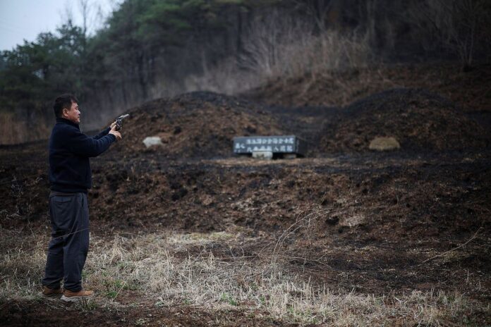 Yetkililer, Gyeongbuk İl Polisinden bir yetkili, 50’li yaşlarında olan adamın, 22 Mart’ta bir aile mezarı tarafından atalara ait bir ayin gerçekleştirdiğinde güneydoğu Uiseong ilçesinde yangına başladığına inanıyor.