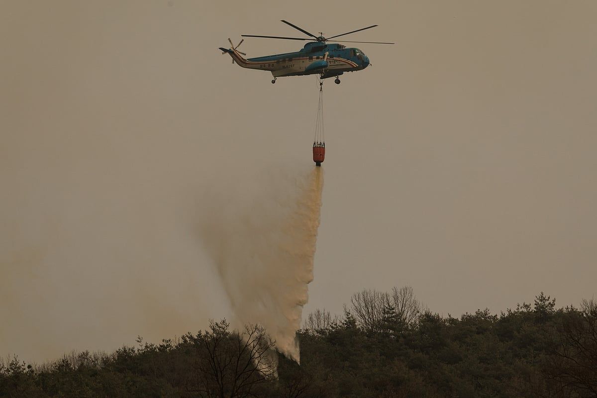 Güney Kore Yetkilileri Helikopterleri ve Askerleri Orman Yangını ile Savaşmak için Görevlendirdi