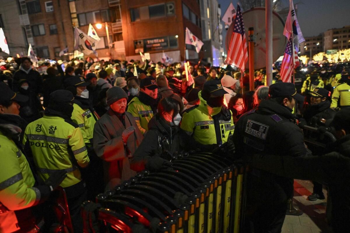 Yoon’un cumhurbaşkanlığı ikametgahının dışında kamp yapan muhalifleri Perşembe günü polisi engellemek için yere serilirken, güvenlik ekibinin üyeleri daha önce polis baskınlarına teşebbüs etmeyi dramatik bir şekilde engelledi.