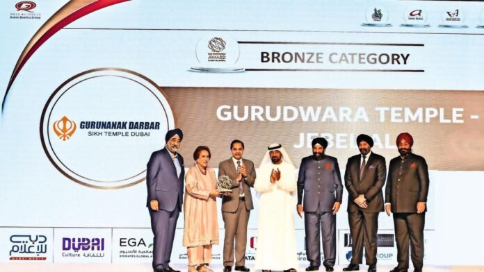 Guru Nanak Darbar Gurudwara Dubai, Gurudwara’nın inovasyonu teşvik etme ve BAE topluluğu içinde hoşgörü ruhunu teşvik etme konusundaki devam eden çabalarını kabul ederek Dubai Kalite Grubu tarafından BAE İnovasyon Ödülü’nü aldı. Ödül, Guru Nanak Darbar Gurudwara Dubai Başkanı Surender Singh Kandhari’nin bu takdir için minnettarlığını ifade ettiği büyük bir törenle verildi.“Topluma hizmet etme ve uyumu teşvik etme taahhüdümüzü güçlendiren BAE İnovasyon Ödülü’nü almaktan gerçekten gurur duyuyoruz. Surender Singh Kandhari, ”Guru Nanak Darbar’da, bir barış ve birlik kültürünü teşvik etmek için inovasyon ve merhametin el ele gittiği Guru Nanak Dev Ji’nin öğretilerini somutlaştırmaya çalışıyoruz ” dedi.Guru Nanak Darbar Gurudwara Dubai, Orta Doğu’daki en büyük ve en önde gelen Sih tapınaklarından biridir. Topluma hizmet etme taahhüdüyle tanınan Gurudwara, kültürler ve inançlar arasında barışı, hoşgörüyü ve birliği teşvik etmeyi amaçlayan çeşitli eğitimsel, sosyal ve hayırsever girişimlere ev sahipliği yapar.