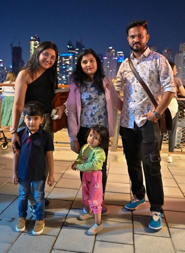 En heyecanlı izleyiciler arasında 4 yaşındaki Aaryan ve 3 yaşındaki arkadaşı Shivanshi vardı. “Paraşütçülerin bacaklarından ateş çıkıyordu!” Dedi Aaryan sırıtarak. “Onu sevdim! Ve dedim ki, ‘Dubai için!” Aaryan, ailesi Neha ve Deep ve teyzesi Priya ile birlikte gösterinin tadını çıkarmaya gelmişti.