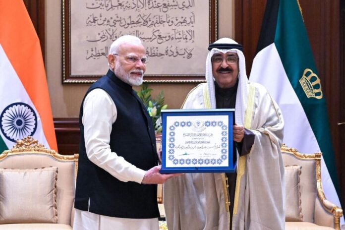 Başbakan Narendra Modi, Pazar günü Kuveyt’in en yüksek sivil ödülü ‘Mübarek El Kabir Nişanı’ ile onurlandırıldı. Kuveyt Amiri Şeyh Meşal El-Ahmed El-Ceber El Sabah Başbakan’ı ödüllendirdi.