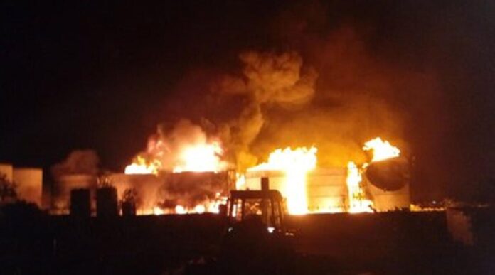 Bir itfaiye yetkilisi, yangının tesiste bir binanın çökmesine neden olduğunu, ancak kayıp bildirilmediğini söyledi.
