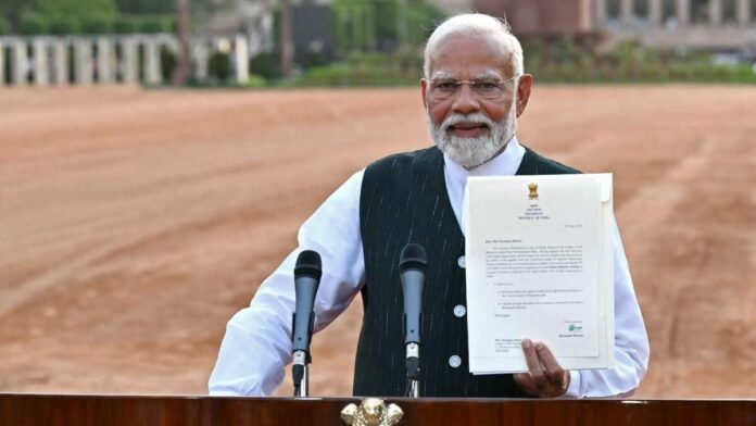 Modi, çoğunluğunu gösteren imzalı destek mektuplarını Cumhurbaşkanı Droupadi Murmu’ya sundu ve bu da onu bir sonraki hükümeti kurmaya davet etti.