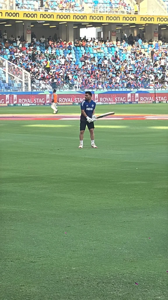 Hintli kriketçiler, bugünün büyük çatışması öncesinde ısınmaya başlamak için sahada yürümeye başladılar. Rinku Singh’in tribünlerden tezahüratlar patlarken ağlara şut attığı görülüyordu.