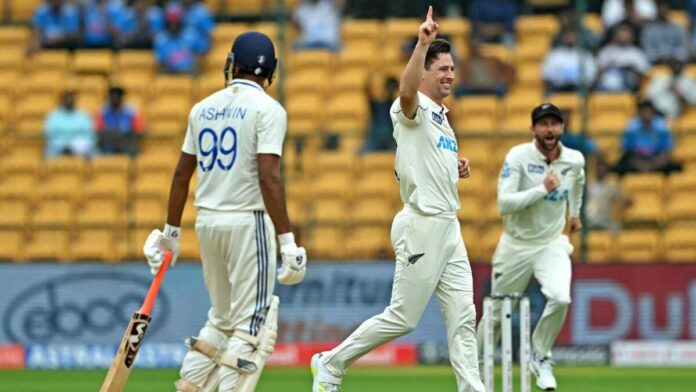 Tim Southee, yedincide ilk darbeyi dokuzda skorla vurdu ve Hindistan kaptanı Rohit Sharma’yı iki vuruş yaptıktan sonra keskin bir iç kanat oyuncusu ile kapıdan içeri attı.