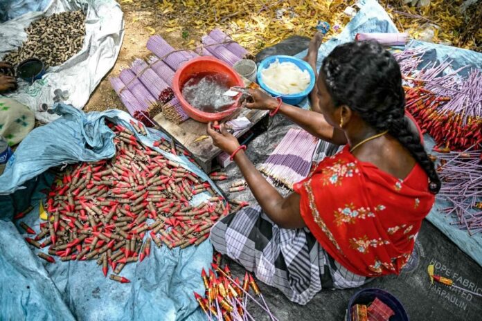 Hindistan’ın havai fişek üretiminin kalbi olan Tamil Nadu’nun güney eyaletindeki bir şehir olan Sivakasi’deki fabrikada zehirli kimyasal dumanlar havada asılı kalıyor.