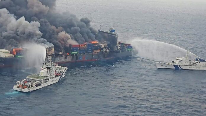 22 mürettebatı taşıyan 268 metrelik (879 fit) konteyner gemisi MV Wan Hai 503, Pazartesi günü Hindistan’ın Beypore limanının yaklaşık 78 deniz mili açıklarında ateş yaktı.