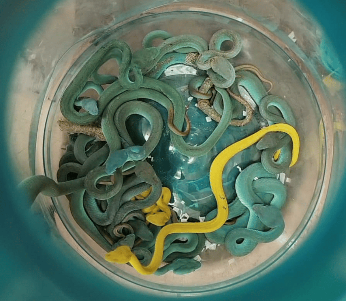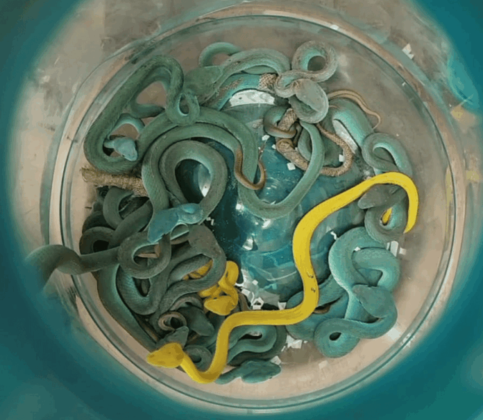 Gümrük memurları, Haziran ayının başlarında Tayland’dan uçan bir Hindistan vatandaşından düzinelerce yılan ve birkaç kaplumbağa ele geçirdi.