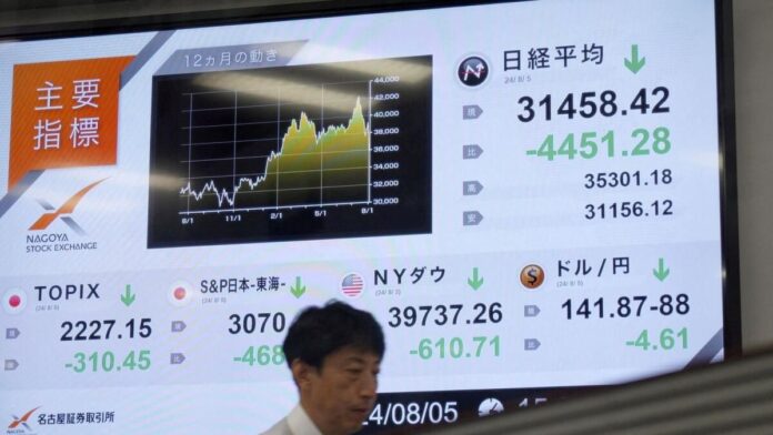 Wall Street, 1987’deki “Kara Pazartesi” kaybını aşan bir noktada Japon hisse senetleriyle küresel bir hisse senedini takip etmeye çalıştı, çünkü ABD’deki durgunluk korkusu yatırımcıları riskten kaçarken, büyümeyi kurtarmak için faiz indirimlerinin gerekli olacağına bahse girdi.
