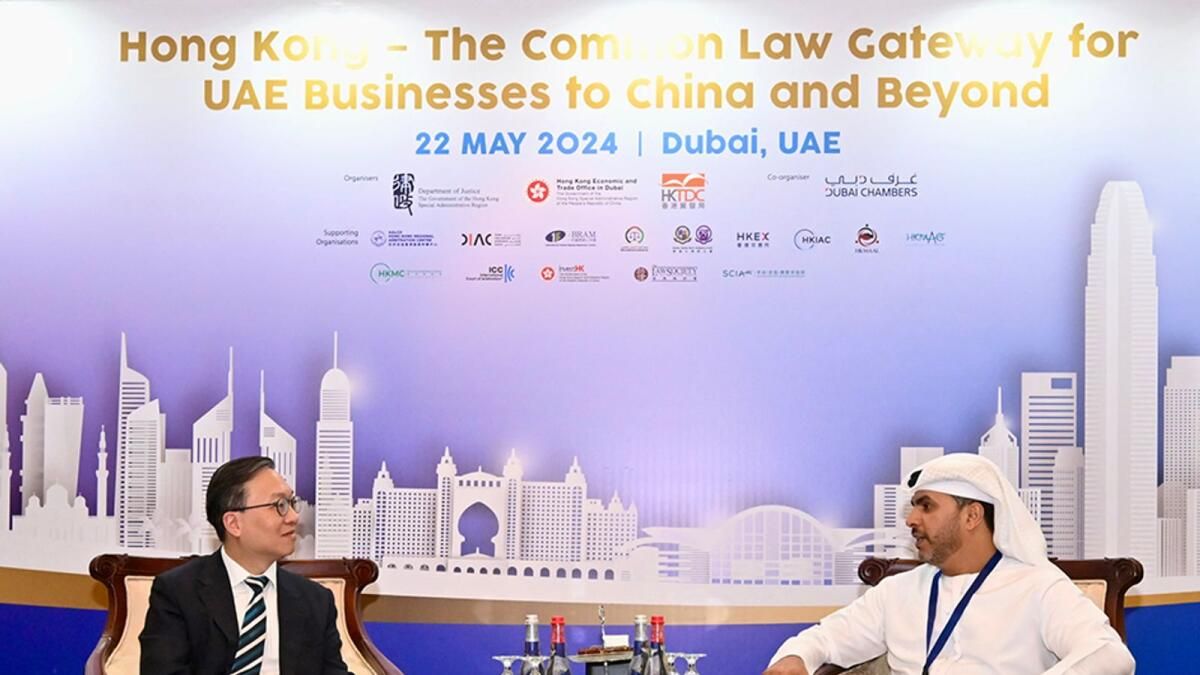 Özel İdari Bölgenin hukuki ve uyuşmazlık çözüm hizmetlerini tanıtmak amacıyla Dubai’de düzenlenen ”Hong Kong – BAE İşletmeleri için Çin’e ve Ötesine Ortak Hukuk Kapısı” başlıklı bir forumda konuşan Lam, Hong Kong’un uluslararası hukuk ve uyuşmazlık çözümü hizmetleri merkezi olarak görevlendirildiğini söyledi. çeşitli önemli ulusal kalkınma planları kapsamında çin’den.