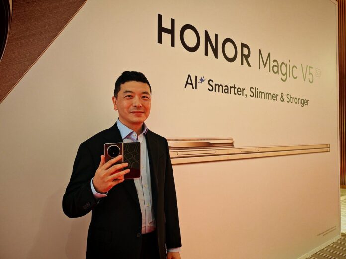 Laurance Li, HONOR Magic V5’in cihazdaki AI tarafından desteklenen çeşitli akıllı özellikler sunduğunu söyledi.