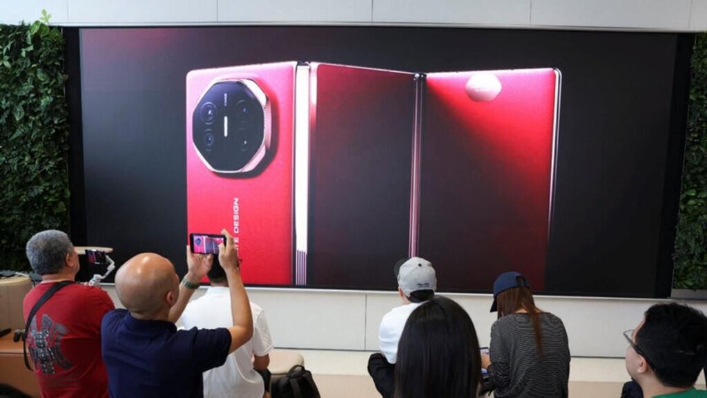 İnsanlar, Salı günü Pekin’deki bir Huawei amiral mağazasında canlı olarak yayınlanan üç yönlü katlanabilir bir akıllı telefon olan Huawei’nin yeni Mate xt’nin lansman etkinliğini izliyor. – ReutersPiyasaya sürülmesi, Apple’ın satışları artırmaya ve teknoloji yarışına ayak uydurmaya çalışırken üretken yapay zeka için üretilmiş iPhone 16’sını duyurmasından bir gün sonra geldi.“Bugün size herkesin aklına gelebilecek ama yapamadığı bir ürün getiriyoruz. Ekibimiz beş yıldır çok çalışıyor ve asla pes etmedi. Bugün bir kez daha endüstrinin tarihini yeniden yazacağız, bilim kurguyu gerçeğe dönüştüreceğiz ve yeni bir katlama cihazları çağına öncülük edeceğiz “dedi.Şirketin web sitesine göre, cihaz zaten depozito gerektirmeyen 4 milyondan fazla ön sipariş aldı. Araştırma firması ıdc’ye göre, katlanabilir telefonlar için tüm küresel pazar ikinci çeyrekte yaklaşık 4 milyon adet oldu.Apple’ı ele geçirmek mi? Bir gözlemci, Huawei’nin üç katlı telefonunun piyasaya sürülmesinin, fiyatı ve Kaliforniya devinin Çin’deki tutumu göz önüne alındığında Apple’ın premium telefon sektöründeki satışlarında büyük bir düşüş yaratmasının olası olmadığını söyledi.Araştırma firması Counterpoint’in direktör yardımcısı Ethan Qi, Apple’ın ülkedeki popülaritesi göz önüne alındığında “Apple’ın pazar payı üzerindeki etkisinin çok sınırlı olması muhtemel” dedi.