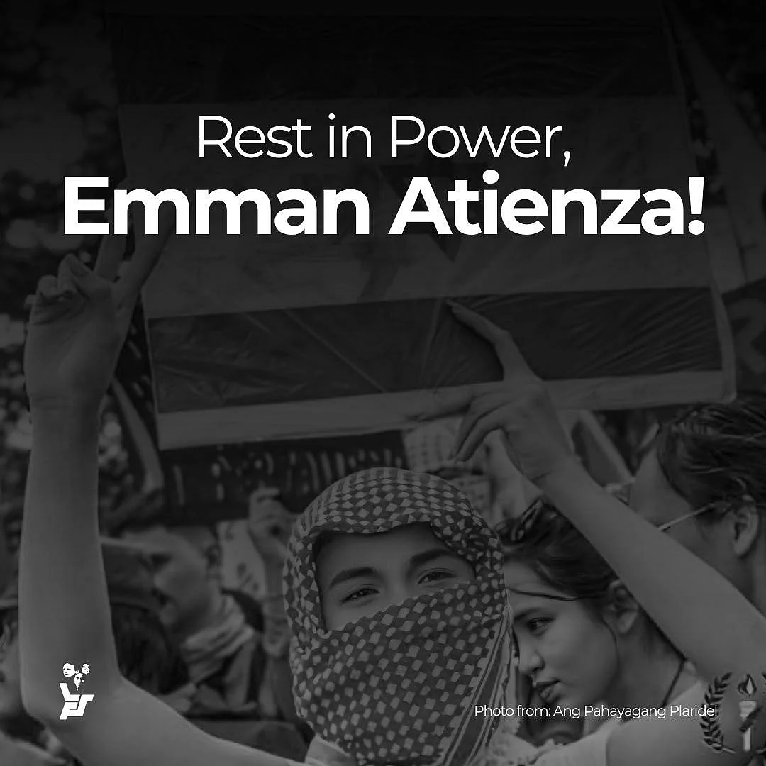 LFS, Emman’ın elinde pankart tutan siyah beyaz bir fotoğrafını yayınladı ve başlığını şöyle yazdı: “İktidarda yat, Emman Atienza”. Fotoğraf, geçen yıl Emman’ın Ekim 2024’te ABD’nin Manila Büyükelçiliği’ndeki protestoya katılarak Mescid-i Aksa Selinin bir yıl dönümünü anmak için çekilmişti.