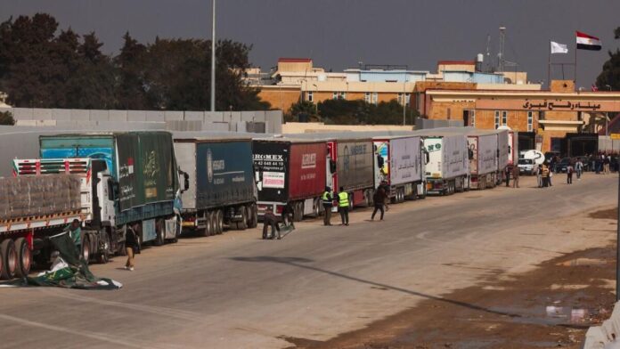 Filistin topraklarındaki ateşkesin başlamasından bu yana, yüzlerce kamyon dolusu yardım Gazze’ye girerken, bazıları havaya kaldırıldı.