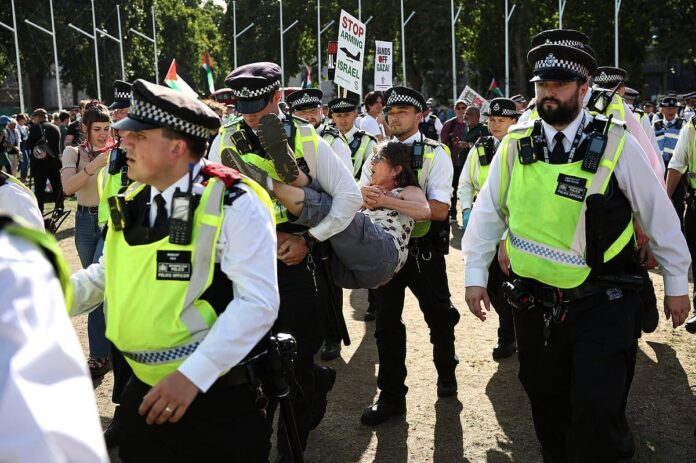 Polis bu hafta yaptığı açıklamada, ingiliz ve Galler ceza adalet sisteminde ilk üç kişinin 5 Temmuz’daki bir gösteride tutuklanmalarının ardından Filistin Eylemini desteklemekle suçlandığını duyurdu.