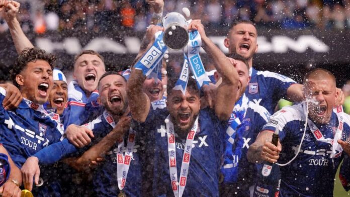 Ipswich Town, ikinci kademe Şampiyonluk kulübünün Cumartesi günü Huddersfield Town’a karşı 2-0 galibiyetle en üst uçuşa geri dönmesiyle Premier Lig’den 22 yıllık sürgünü sona erdirdi ve Leeds United’ın ikinci otomatik terfi noktasını reddetti.