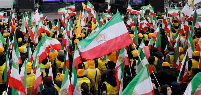 İran’ın 1979 monarşi karşıtı devriminin yıldönümüne denk gelen İranlıların ülke çapındaki ayaklanmasını desteklemek için Cumartesi günü Berlin’de binlerce insan protesto etti.