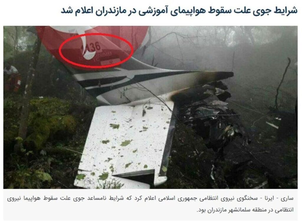 İran resmi İslam Cumhuriyeti Haber Ajansı’nın (IRNA) Mazandaran’da kötü hava koşulları nedeniyle düşen bir polis eğitim uçağı hakkındaki raporunda da benzer bir fotoğraf yer aldı.Irna’nın raporunda, Mizan’ın fotoğraflarında uçakta görülen numarayla eşleşen “1136” numaralı bir uçak kanadının fotoğrafı gösteriliyor.