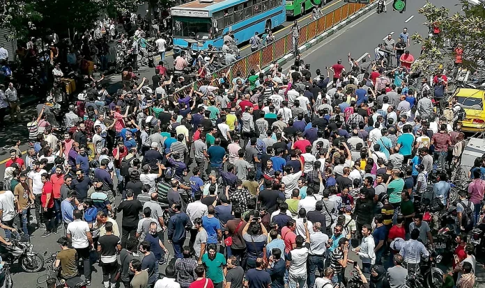 Yaptırımlardan etkilenen ülkedeki ekonomik sıkıntıların yol açtığı gösteriler, Aralık ayında, büro liderliğini eleştiren ve devrilen Pehlevi kraliyetlerinin geri dönüşünü destekleyen tezahüratlarla işaretlenmiş kitlesel hükümet karşıtı protestolara dönüştü.