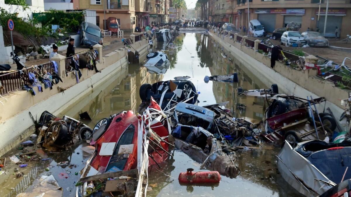 İspanya’nın doğusundaki Valensiya bölgesindeki Alfafar kasabasını sel baskınları etkiledikten sonra bölge sakinleri Çarşamba günü çamurla kaplı bir caddeyi temizlemeye çalışıyorlar. Afp’nin