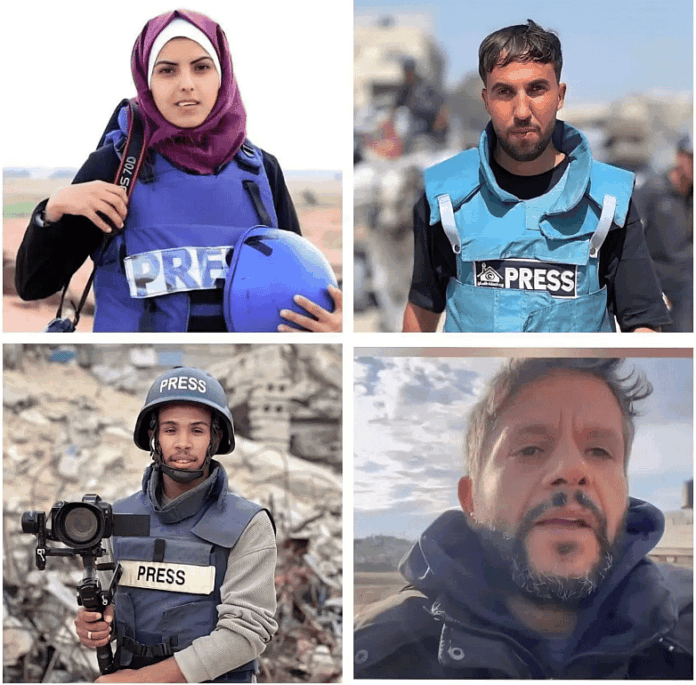 Filistinli Gazeteciler Sendikası güçlü bir ifadeyle öldürülen gazetecilerin yasını tutarak saldırıyı ‘katliam’ olarak nitelendirdi.
