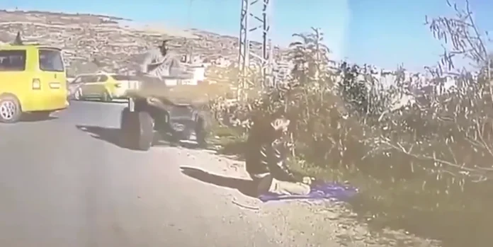 Filistin televizyonunda yayınlanan ve Reuters tarafından doğrulanan video, sivil giyimli ve omzuna silah asılmış bir adamın arazi aracını yol kenarında dua eden bir adama sürdüğünü gösteriyor.