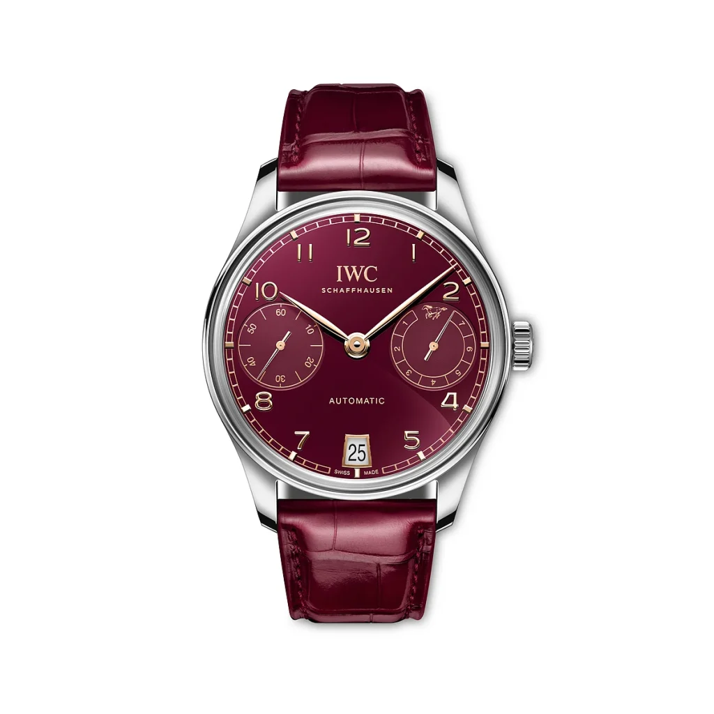 42 mm paslanmaz çelikle kaplanmış olan saat, Portugieser serisini uzun zamandır tanımlayan klasik olarak temiz oranları yansıtıyor. Ama bakışlarını tutan bordo kadran. Ay Yeni Yılı kutlamalarının uğurlu tonlarından alınan bordo, canlılık ve kısıtlama arasında hassas bir denge kurar. Bu arka plana karşı, altın eller ve aplikler ışıkla nazikçe oynar, sıcaklık, kutlama ve zamansız ihtişamı çağrıştırır.