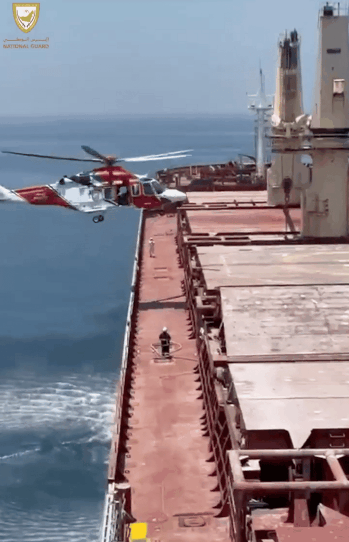 50 Yaşındaki bir Hindistan vatandaşı, BAE’nin karasularındaki bir kargo gemisinde yanıklar ve çok sayıda yaralanma meydana geldikten sonra Abu Dabi’deki Şeyh Shakhbout Tıp Şehri’ne havalandı.
