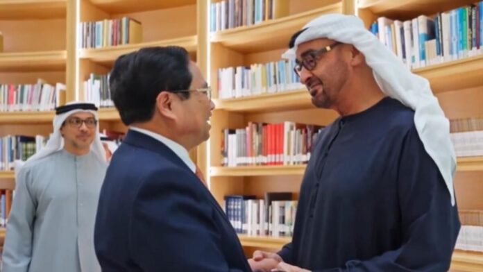Toplantı, Şeyh Muhammed’in Vietnam Başbakanını memnuniyetle karşıladığı Abu Dabi’deki Qasr Al Watan’da yapıldı ve ziyaretin BAE-Vietnam ilişkilerini her iki ülkenin çıkarlarına fayda sağlayacak şekilde daha da genişleteceği yönündeki umutlarını dile getirdi. Toplantıda ayrıca Başkan Yardımcısı, Başbakan Yardımcısı ve Cumhurbaşkanlığı Mahkemesi Başkanı Şeyh Mansur bin Zayed Al Nahyan da hazır bulundu.