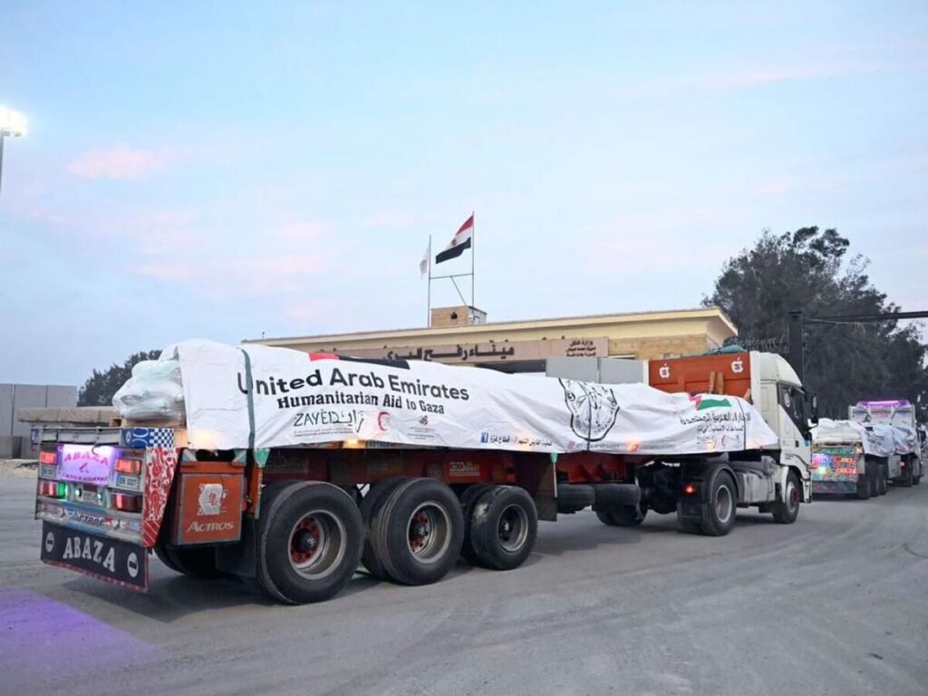 BAE’DEN çeşitli insani yardım yüklü üç konvoy geçen hafta Mısır’daki Refah Sınır Kapısından Gazze Şeridi’ne geçti.Bu çaba, BAE’nin insani inisiyatif Operasyonu Şövalye Şövalyesi 3 kapsamında mevcut koşullar altında Filistin halkını destekleme ve yardım etme misyonunun bir parçası.Konvoylar, 352,6 tondan fazla insani yardım taşıyan 33 kamyondan oluşuyordu. Malzemeler arasında gıda maddeleri, kışlık giysiler, gıda paketleri, su tankerleri, kanalizasyon tankerleri, un, çocuklar için besin takviyeleri, barınak çadırları ve diğer temel malzemeler vardı.Bu, Chivalrous Knight 3 Operasyonu kapsamında Gazze Şeridi’ne teslim edilen toplam yardım konvoy sayısını 1.243 kamyonun dahil olduğu 141’e çıkarıyor.Aşağıdaki videoyu izleyin:BAE bugüne kadar bu operasyonla Filistin halkına 27.432 tonun üzerinde yardım sağlamıştır. Bu çabalar, Gazze sakinlerinin karşılaştığı ağır koşulları önemli ölçüde hafifletti, savunmasız grupların acılarını hafifletti ve temel ihtiyaçlarını karşıladı.
