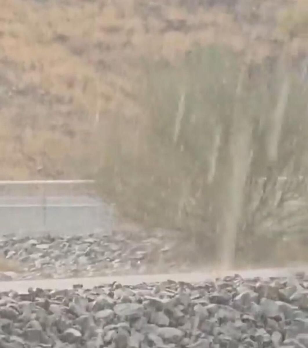 Bunaltıcı sıcaktan bir süre sonra, BAE’nin bazı bölgeleri Pazartesi günü orta ila şiddetli yağış ve ayrıca küçük dolu yağışı aldı. Ulusal Meteoroloji Merkezi’ne göre, Sharjah’daki Wadi Hilo’da şiddetli yağmur ve bir miktar dolu vardı.Doğu Bölgesindeki Kalba Shokah Yolu ılımlı yağışlara tanık olurken, Ras Al Kaimah’taki Shawka-Al Muinai Yolu çevresindeki bölgelere hafif yağmur yağdı.