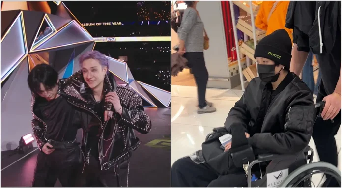 Boyband Stray Kids ‘ Lee Know, segmentler arasındaki merdivenlerde koşarken ayak bileğini büktükten sonra dans dizileri sırasında sahnede topallarken görüldü.
