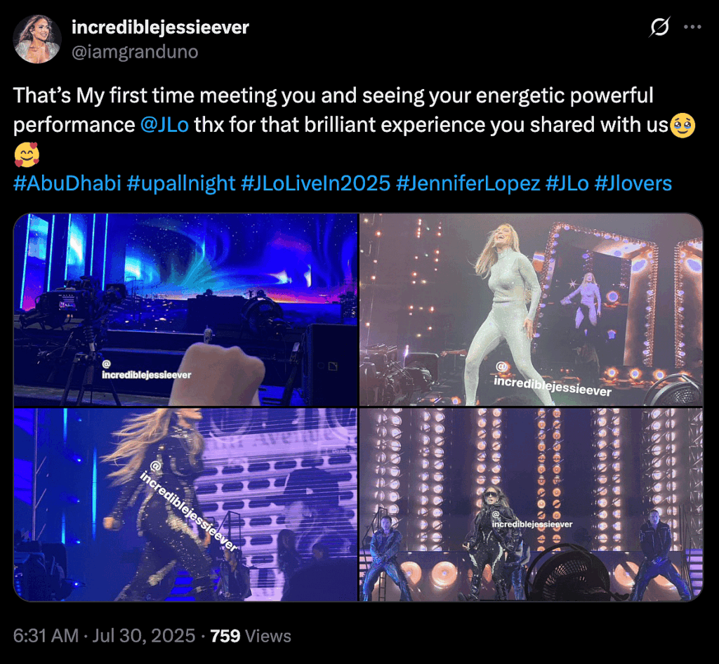 Şimdi, 2025’te J.Lo’nun bir sahneyi nasıl yöneteceğini bildiğini inkar etmek hala mümkün değil. Işıklandırma, kostümler veya hareketleri olsun, Abu Dabi’den konuşarak ve tweet atarak ayrıldı.